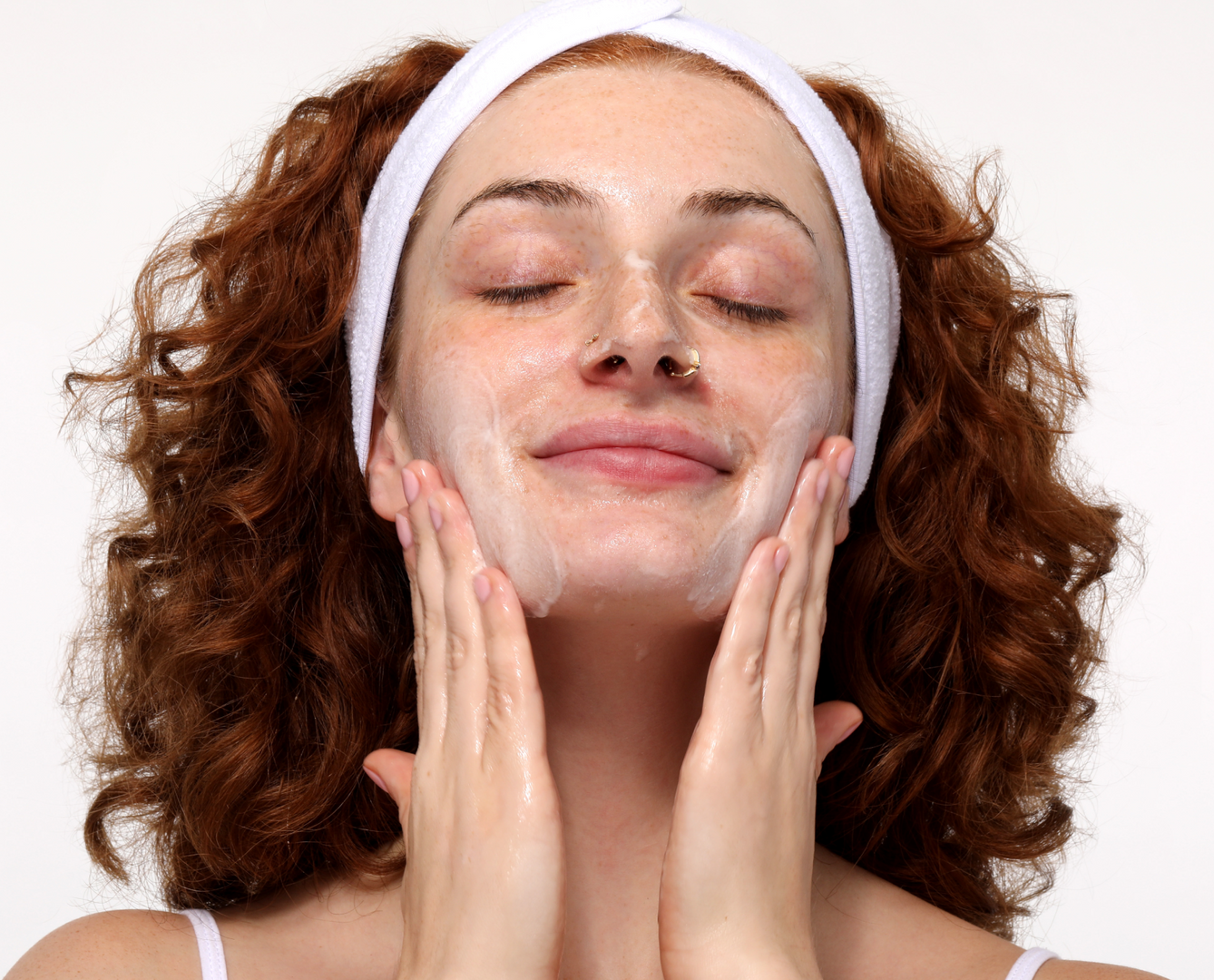 Apply water and continue massaging to transform the oil into a lightweight, milky emulsion.